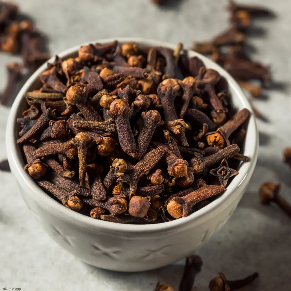 Cloves are often used as a spice in cooking, both in whole form and ground. They have an intense, sweet-spicy taste and a strong, aromatic aroma. Cloves are used in many different culinary applications, from savory dishes to desserts. They are a characteristic component of many spice blends, such as gingerbread spice.