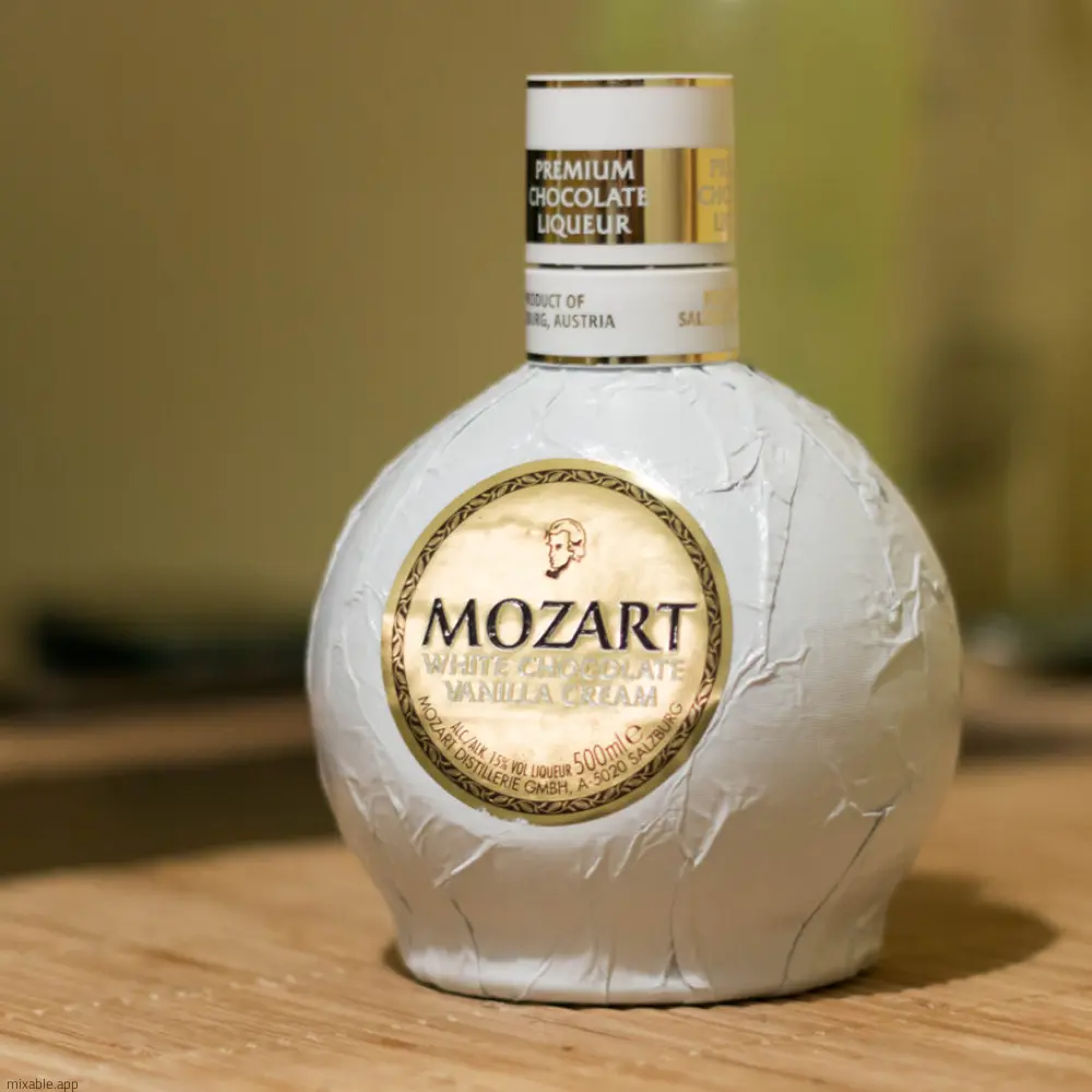 Special characteristics: 60 percent less fat and considerably less alcohol (only 15 percent) than Irish Creams. Mozart White Chocolate Vanilla Cream chocolate liqueur likes to take on the role as the secret star of any party. It is best served slightly chilled, preferably with fresh seasonal fruit.