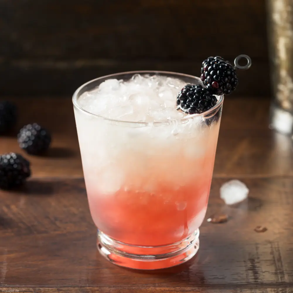 - Put the blackberries in a glass together with blackberry liqueur, lemon juice and sugar syrup.