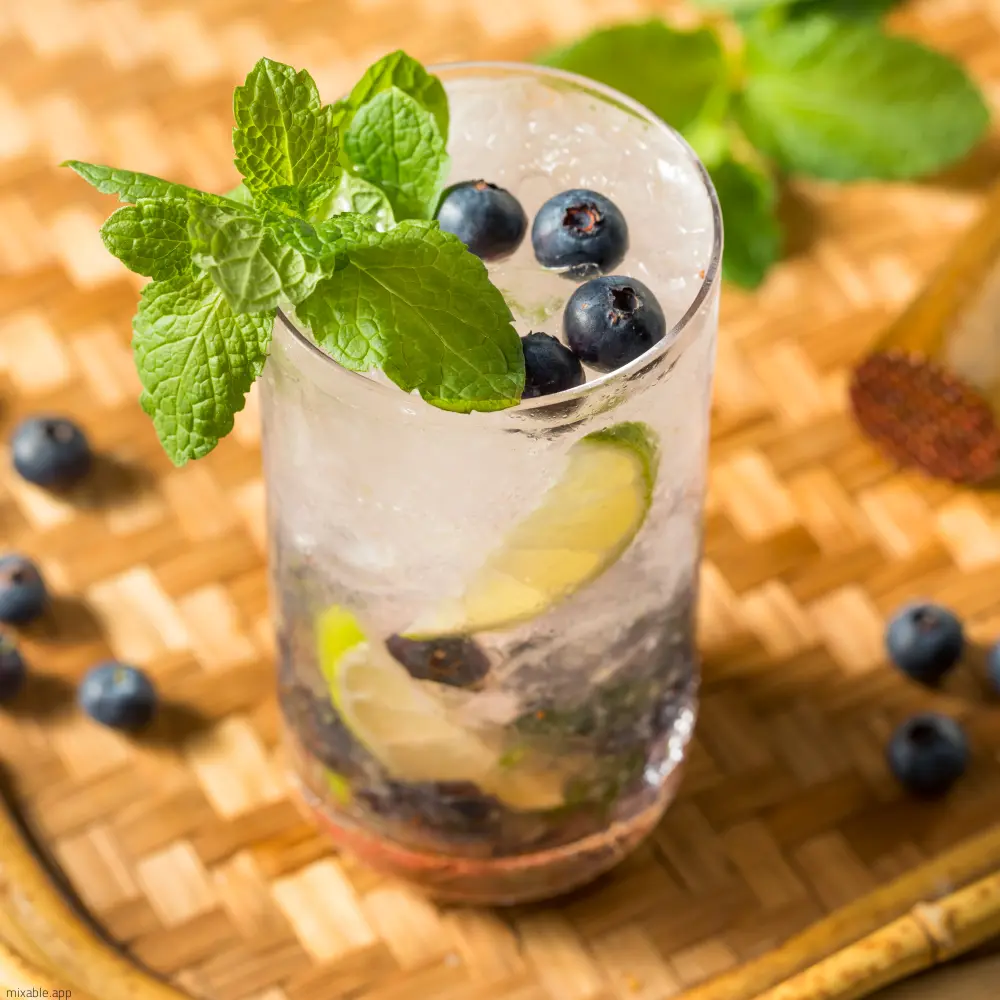 Since the blueberry liqueur from De Kuyper is colorless, the blueberries can be added directly to the glass... these definitely stand out in color!