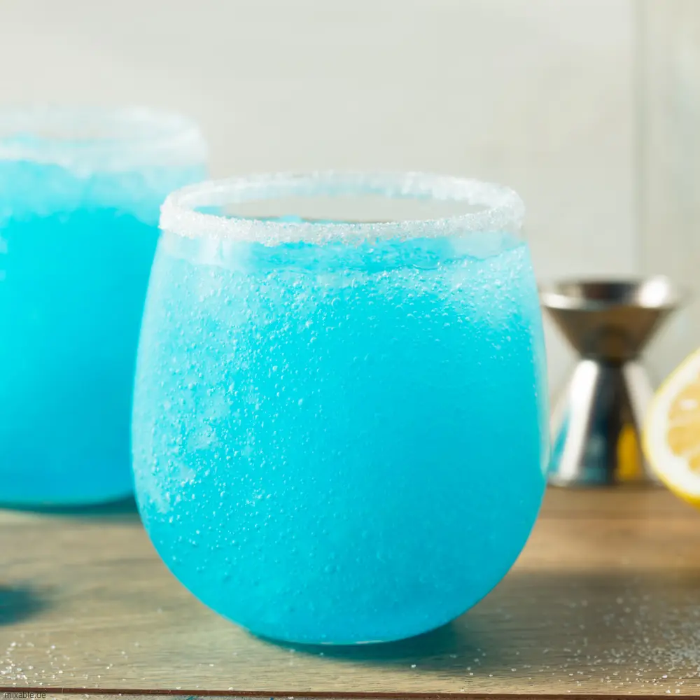 - Place pineapple juice, vodka, Blue Curaçao and Cream of Coconut in a blender.