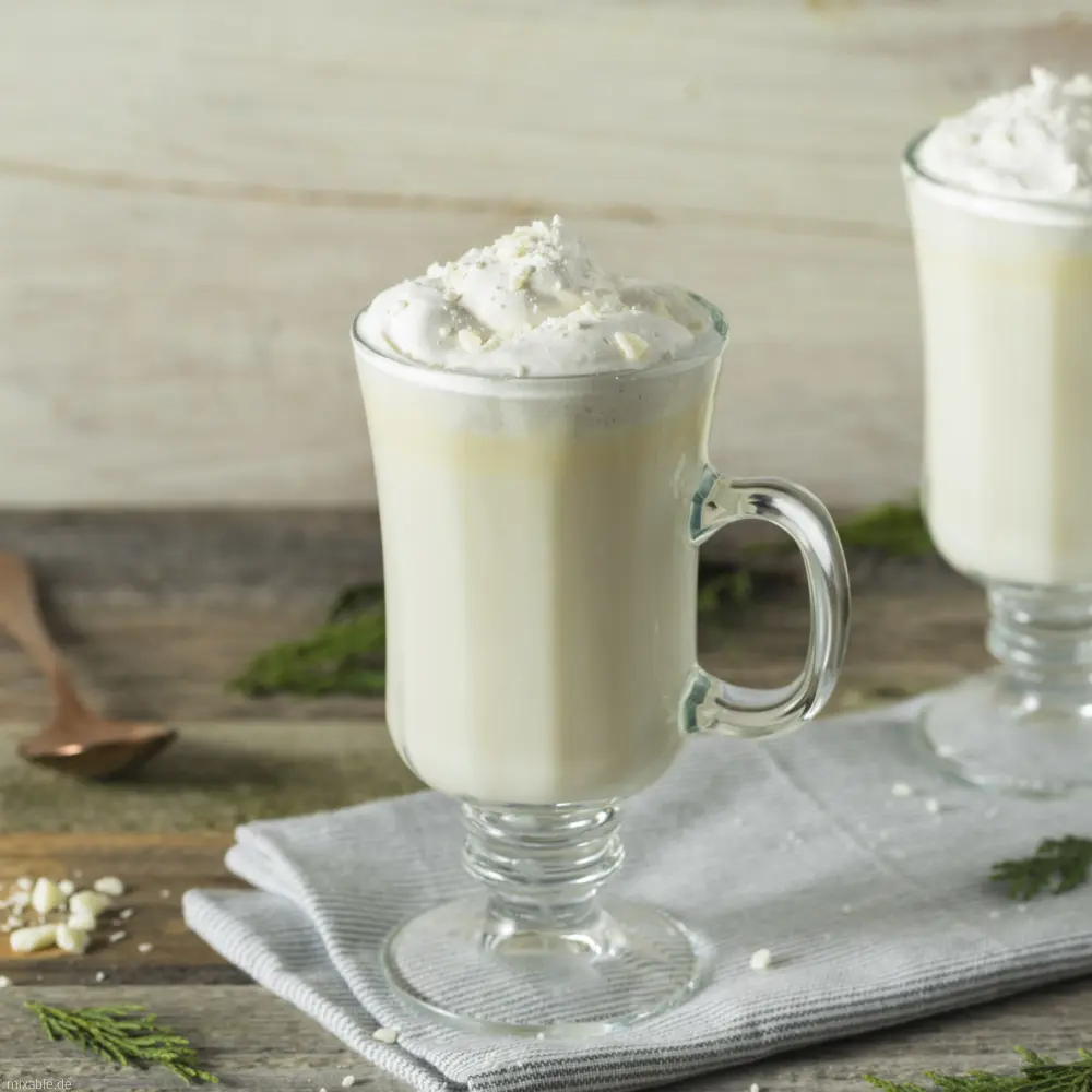 - Pour the warm milk from the pot into a glass and decorate with vanilla cream (alternatively with frothed milk).