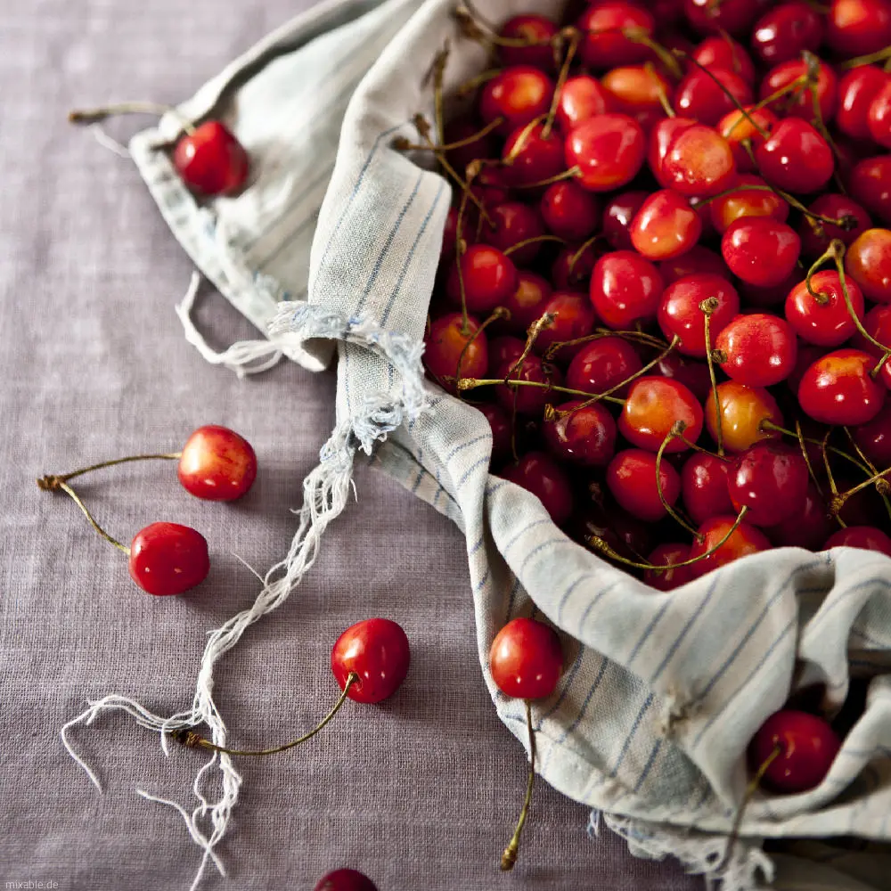 Cocktail cherries and honeydew melon